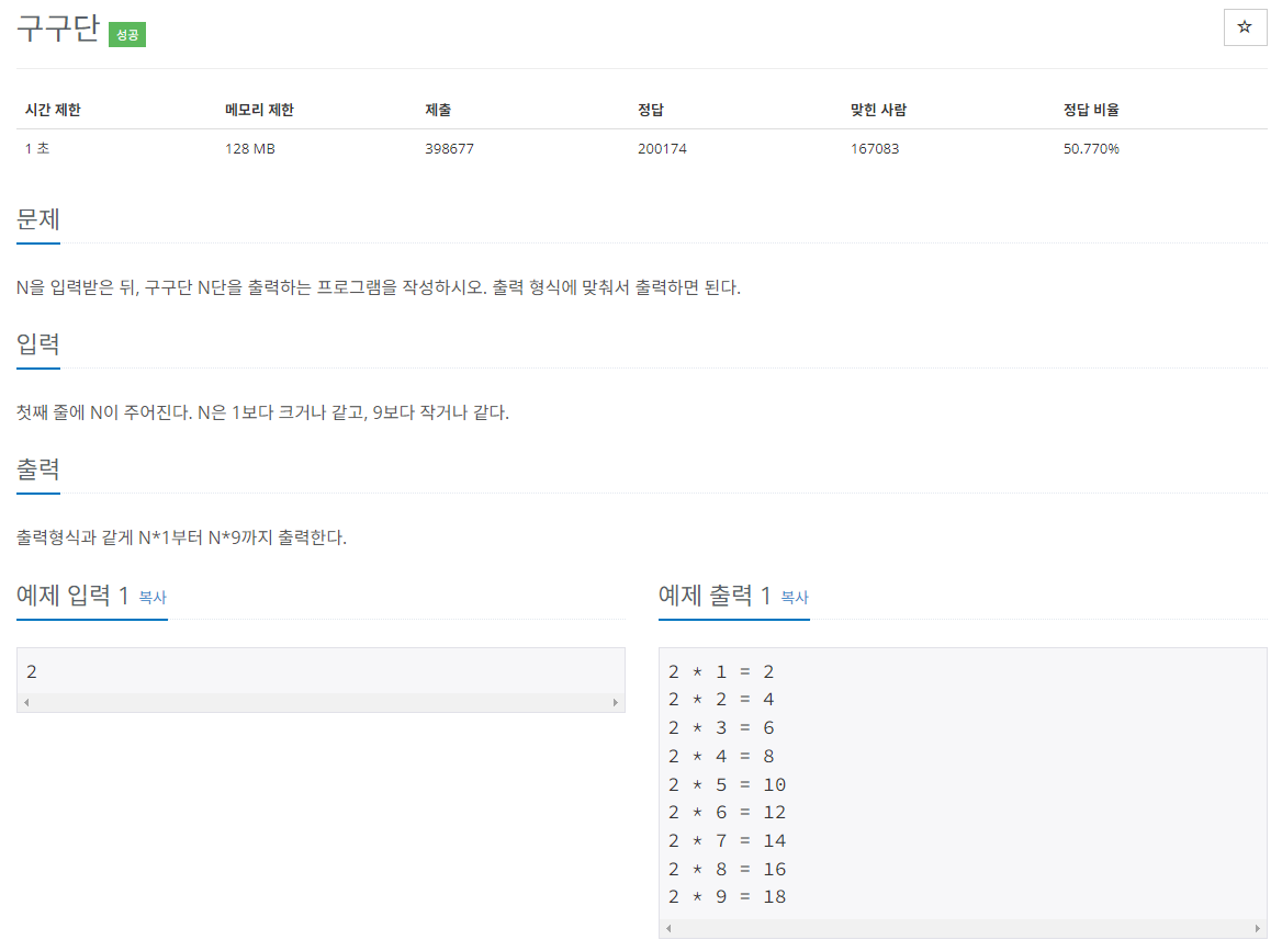 N을 입력받은 뒤, 구구단 N단을 출력하는 프로그램을 작성하시오. 출력 형식에 맞춰서 출력하면 된다.