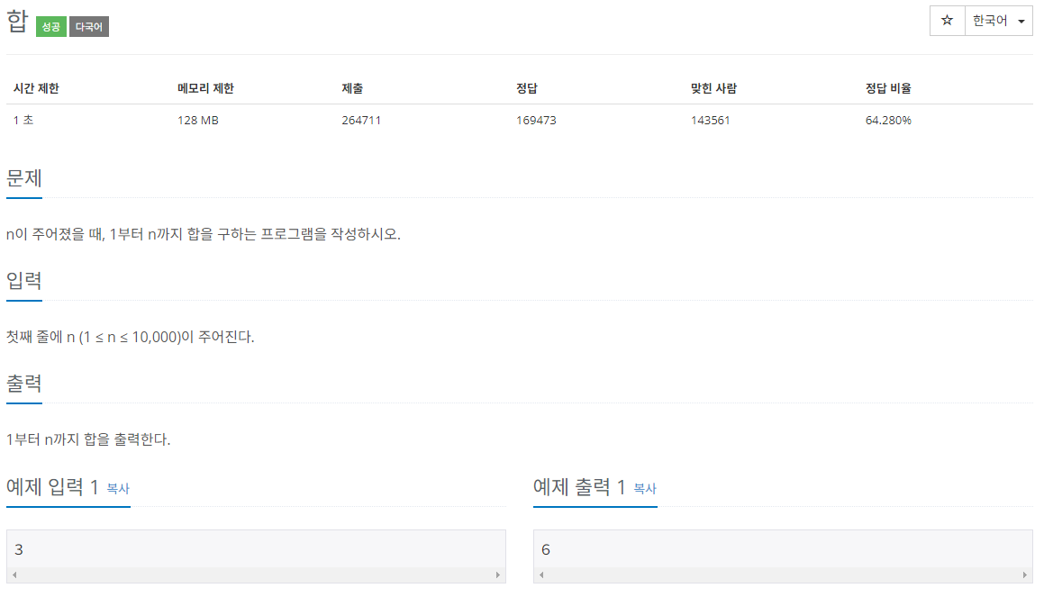 반복문을 학습하면 가장 먼저 접하는 1부터 n까지의 합을 구하는 알고리즘입니다.