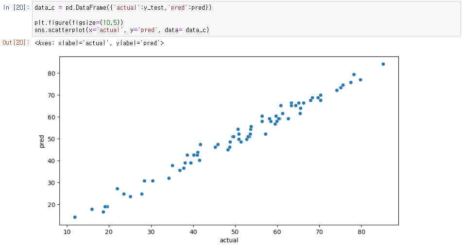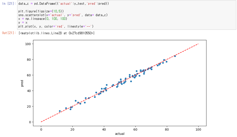 y = x 그래프에 얼마나 가까운지에 따라 모델이 적절한지 확인할 수 있습니다.