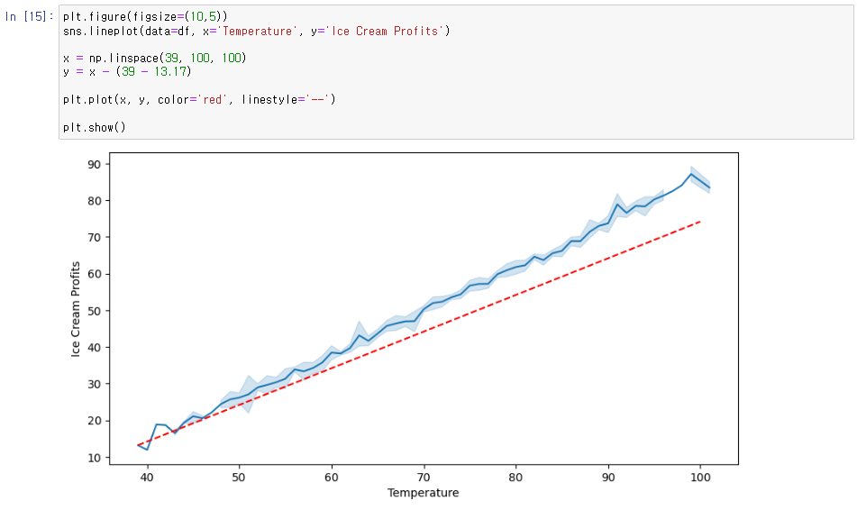 y = df['Ice Cream Profits'] # 종속변수 (이윤)