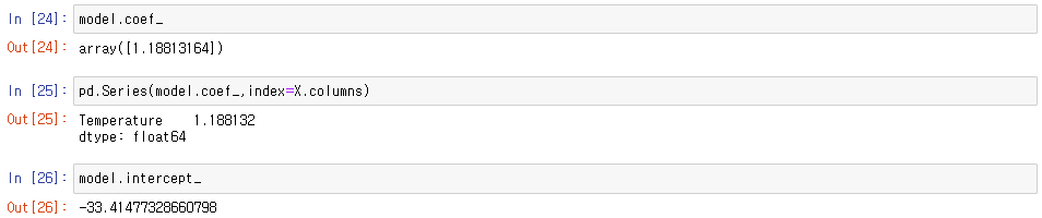 계수가 1.188132로 온도가 1이 증가할수록 아이스크림의 판매 이윤은 약 1.188132 정도라는 것을 확인할 수 있습니다.