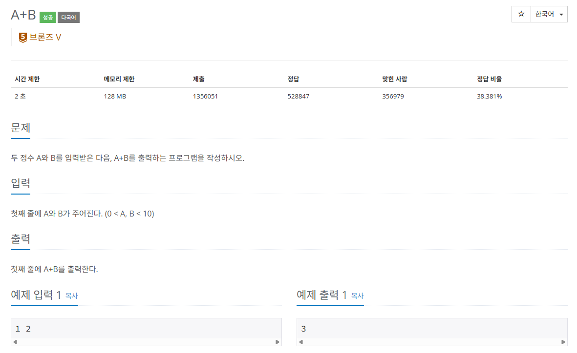 // 2. 두 정수 A와 B를 순서대로 입력받아 저장합니다.