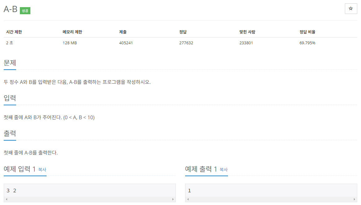 두 정수 A와 B를 입력받은 다음, A-B를 출력하는 프로그램을 작성하시오.