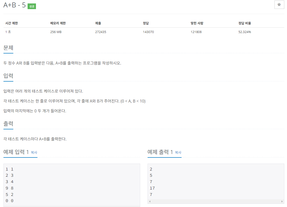 A + B 시리즈 중 특정 입력을 받으면 반복을 종료시키는 반복문을 작성해야 하는 문제입니다.